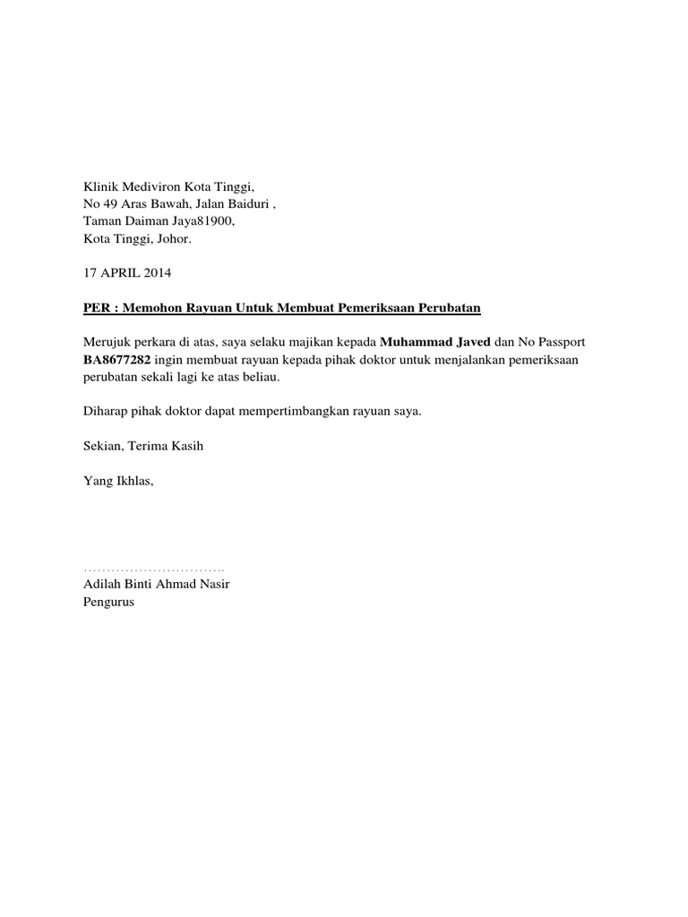 Other Apps - May 29 2022 Rayuan Fomema Untuk Klinik Pdf Post a Comment. Ikuti sahaja format yang kami nyatakan pada artikel berkenaan untuk menulis surat rayuan ini. Laporan perubatan yang di.